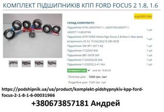 Комплект подшипников для коробки передач Форд фиеста 2002год LM29749/11 SKF -1шт,800856 размер 25*62*19 FAG -1шт. BT1-0017A/Q SKF -1шт, F122502 размером 22*68*19 -1шт, BB1-078 SKF размером 22*52*15, F-232032.2-41 INA -1шт, F-232032-60 INA -1шт, можно предлагать не весь комплект а и более дешевые аналоги